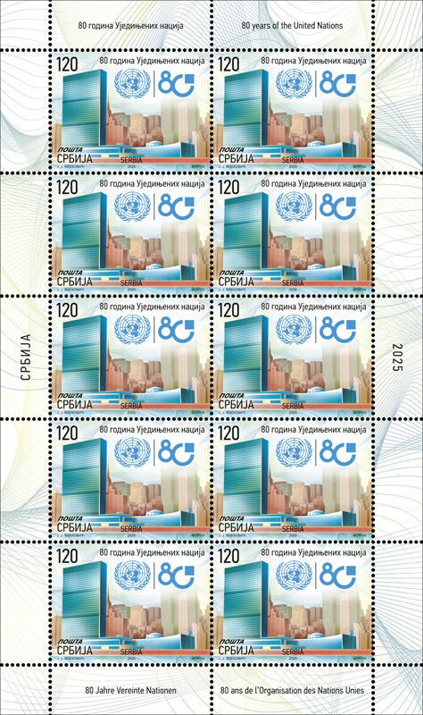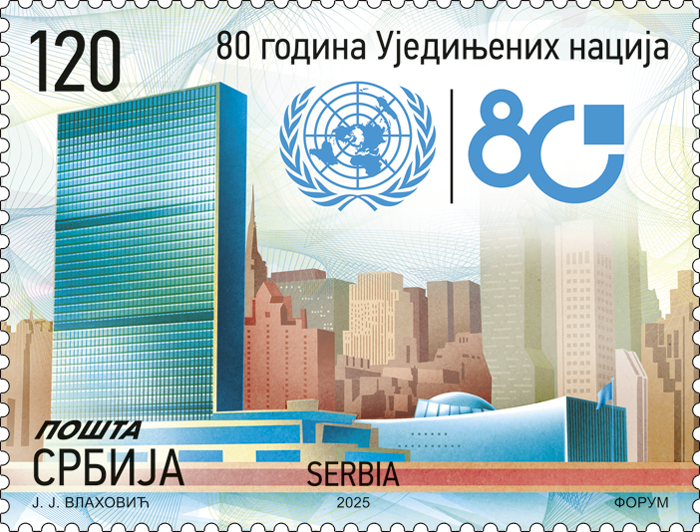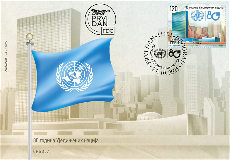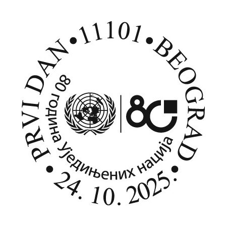 To mark the 80th anniversary of the organization, under the slogan “Building Our Future Together”, the United Nations has also created a jubilee logo. The Republic of Serbia, as a UN member state, joined the marking of this significant anniversary by issuing a commemorative postage stamp issue, with this jubilee logo as part of the postage stamp motif.