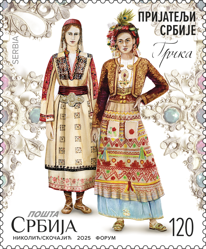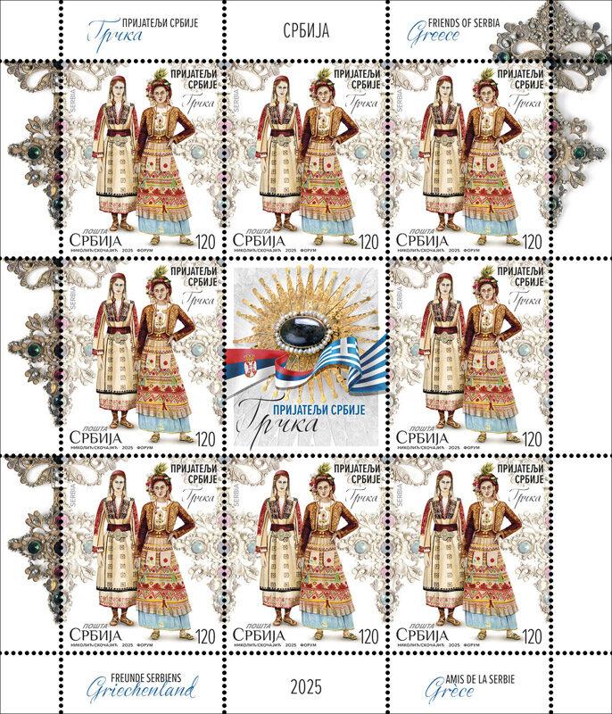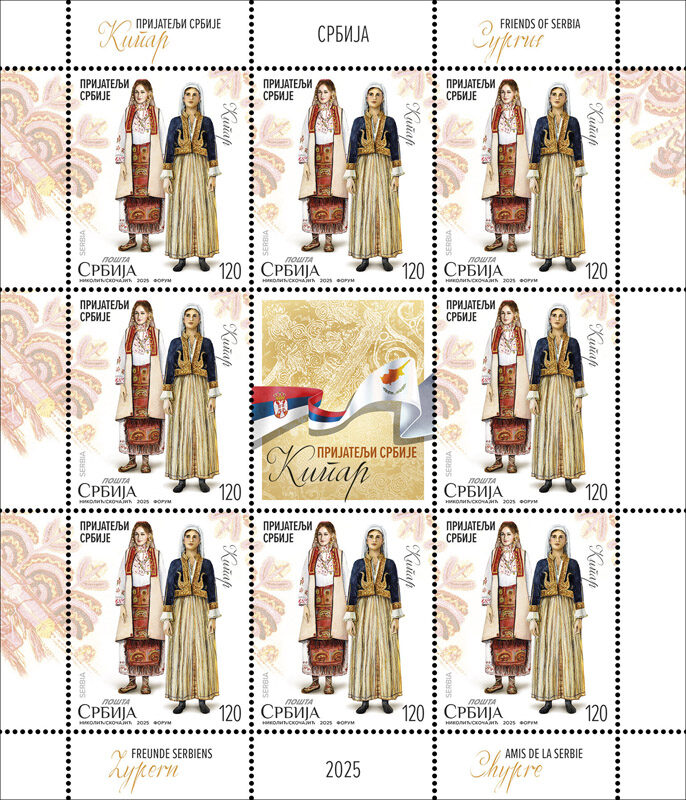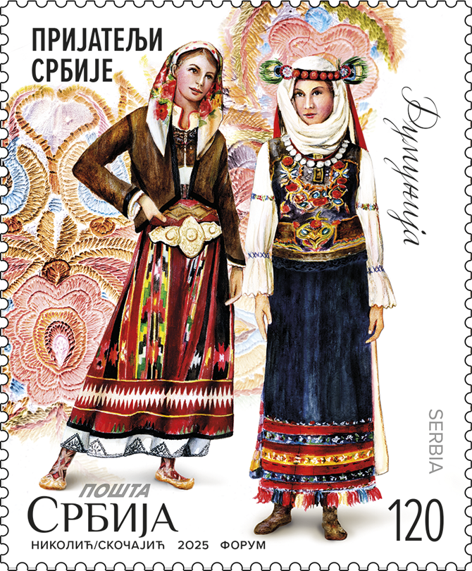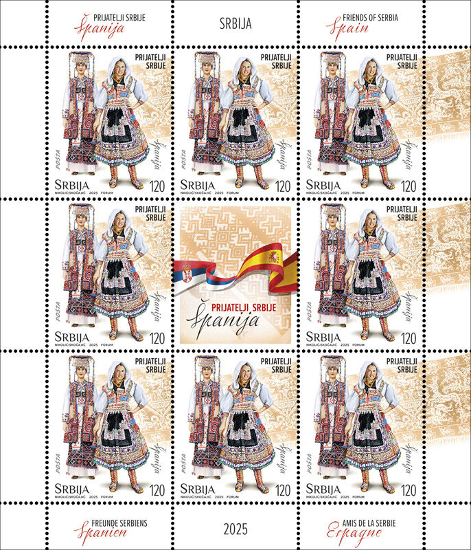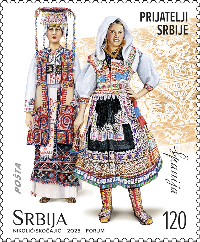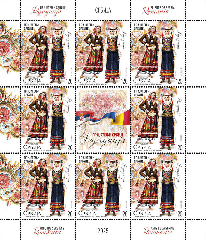 With this commemorative stamp issue, we show our respect and gratitude to the countries of Europe with which Serbia fosters deep friendly relations based on mutual trust and support. The motifs on the stamps depict an example of the rich cultural and historical heritage of our own and our friendly nations, depicted in folk attire that testify to the preservation of tradition and underline the closeness that connects and unites us with our friends.