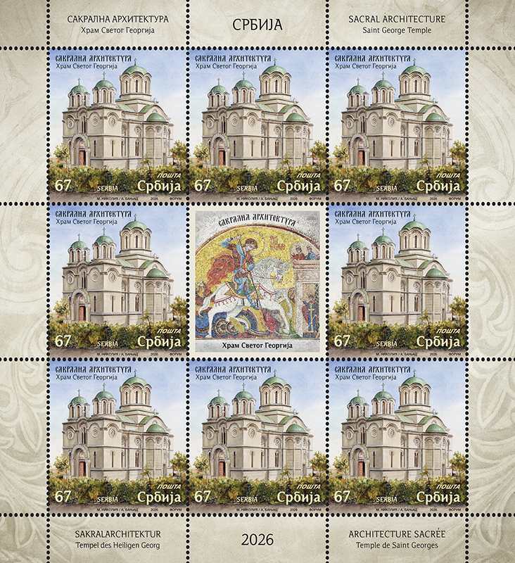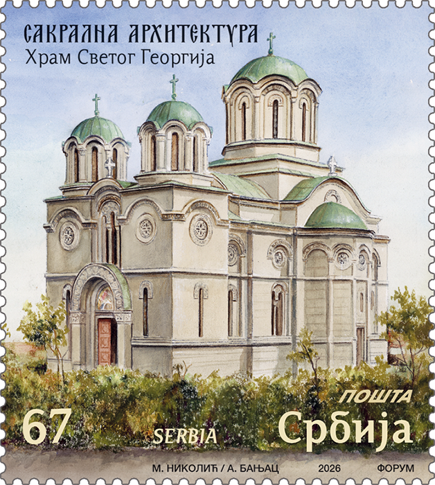 The Saint George Temple in Čukarica was designed by Vasily Mikhailovich Androsov in co-authorship with architect Dragutin Maslać. Dimitrije Mitar Jovanović donated his land in Čukarica to the Belgrade Municipality for the construction of a church, the construction of which began in June 1928 and lasted until 1932, when it was completed and consecrated. Built in the traditional Serbian-Byzantine style, with a base of an inscribed cross and three domes, the church’s architecture is reminiscent of medieval endowments, while the white stone facade and harmonious proportions of the church provide a sense of peace and spiritual stability in the midst of the urban environment. With its specific location, on a hill that dominates the panorama of Čukarica, the Saint George Temple still emphasizes the cultural as well as urban and spatial values of this part of Belgrade today.