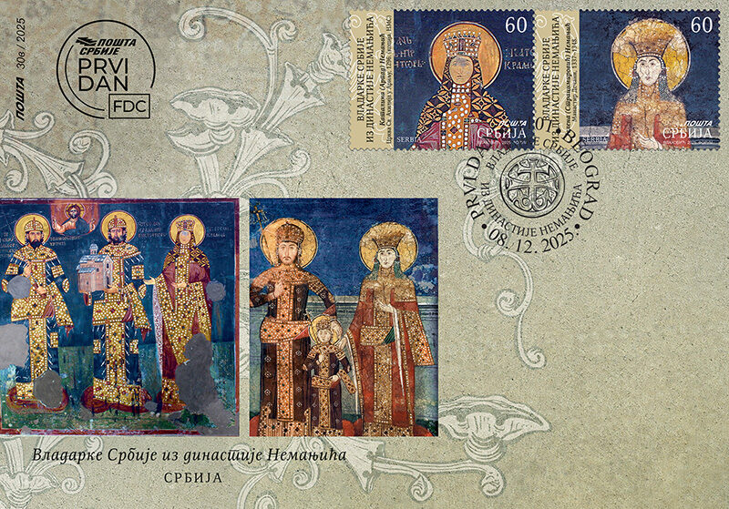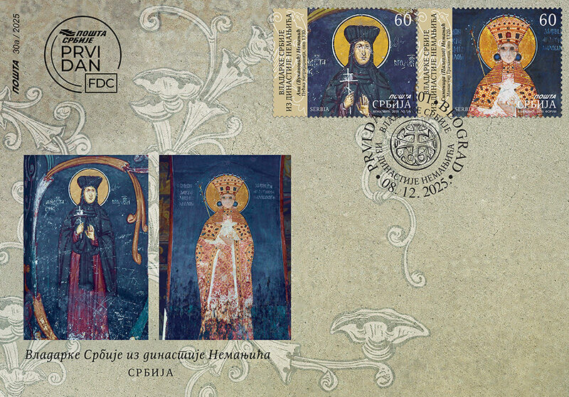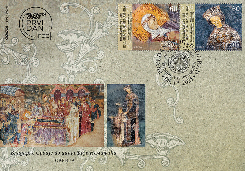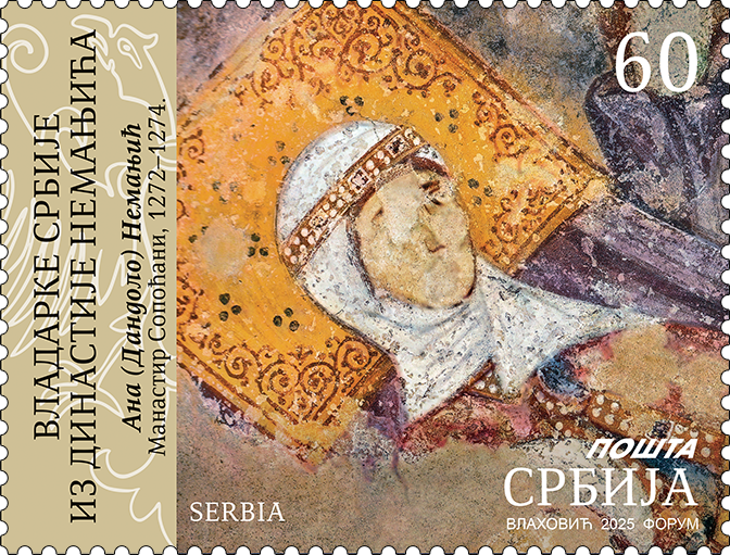 Мотив на марки – детаљ фреске из Манастира Сопоћани.