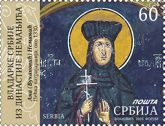 Мотив на марки – детаљ фреске из Пећке патријаршије.