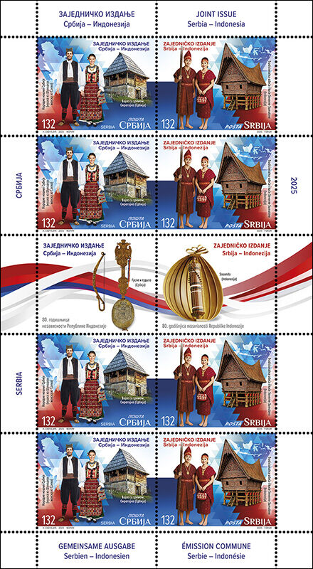 Заједничко издање поштанских марака две земље увек је изузетна прилика за потврду и продубљивање њихових пријатељских односа. Путем поштанске марке земље лако комуницирају, без обзира на географску удаљеност и језике којима се у њима говори. Овом приликом везу Србије и Индонезије представља део културнe баштинe две земље – традиционалне народне ношње и куће представљене на маркама и музички инструменти приказани на вињетама и пригодном коверту.